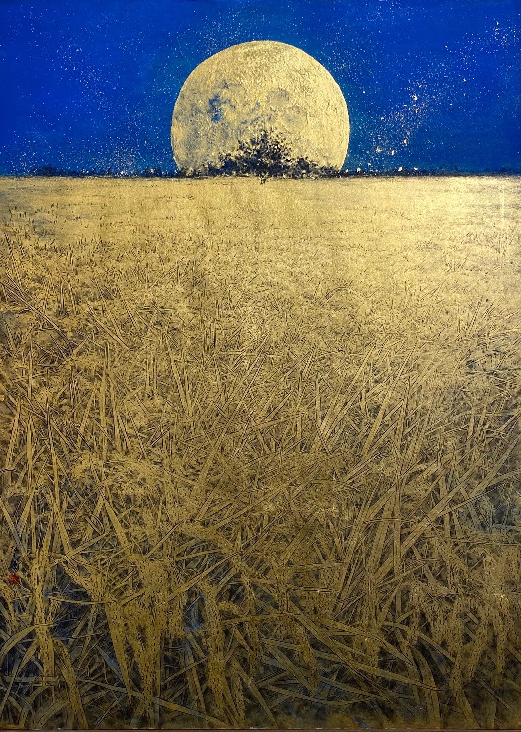 | 豐盛<紙本 礦物彩 金箔> 183X91.5cm 2019 |